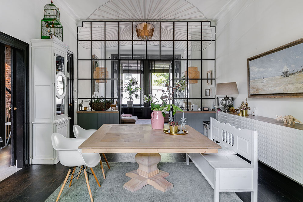 3. Простота стиля требует, чтобы мебели было немного. Массивный и немного грубоватый стол отлично впишется в такой интерьер!